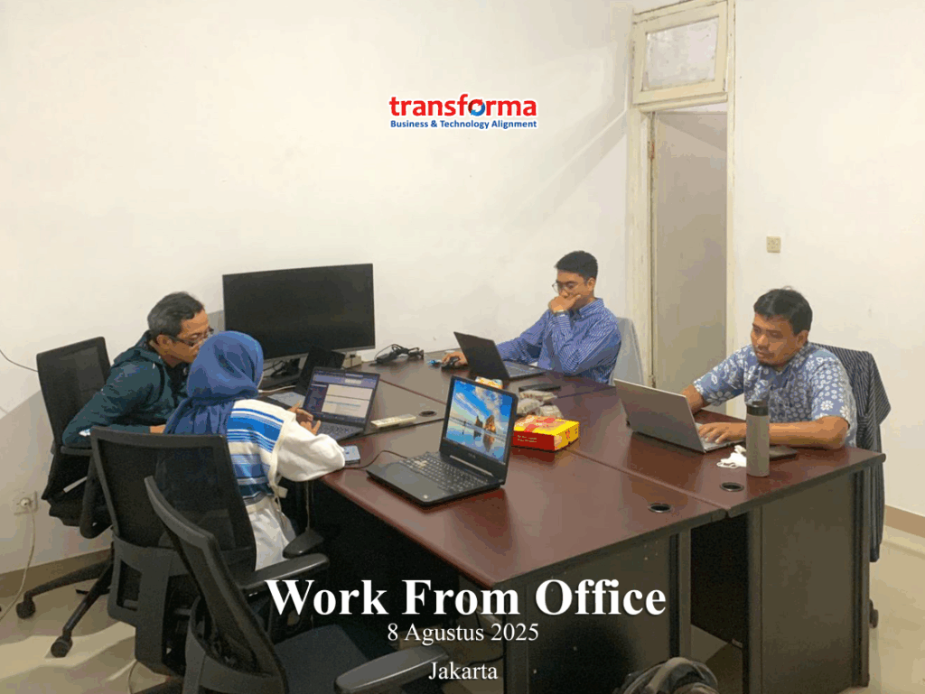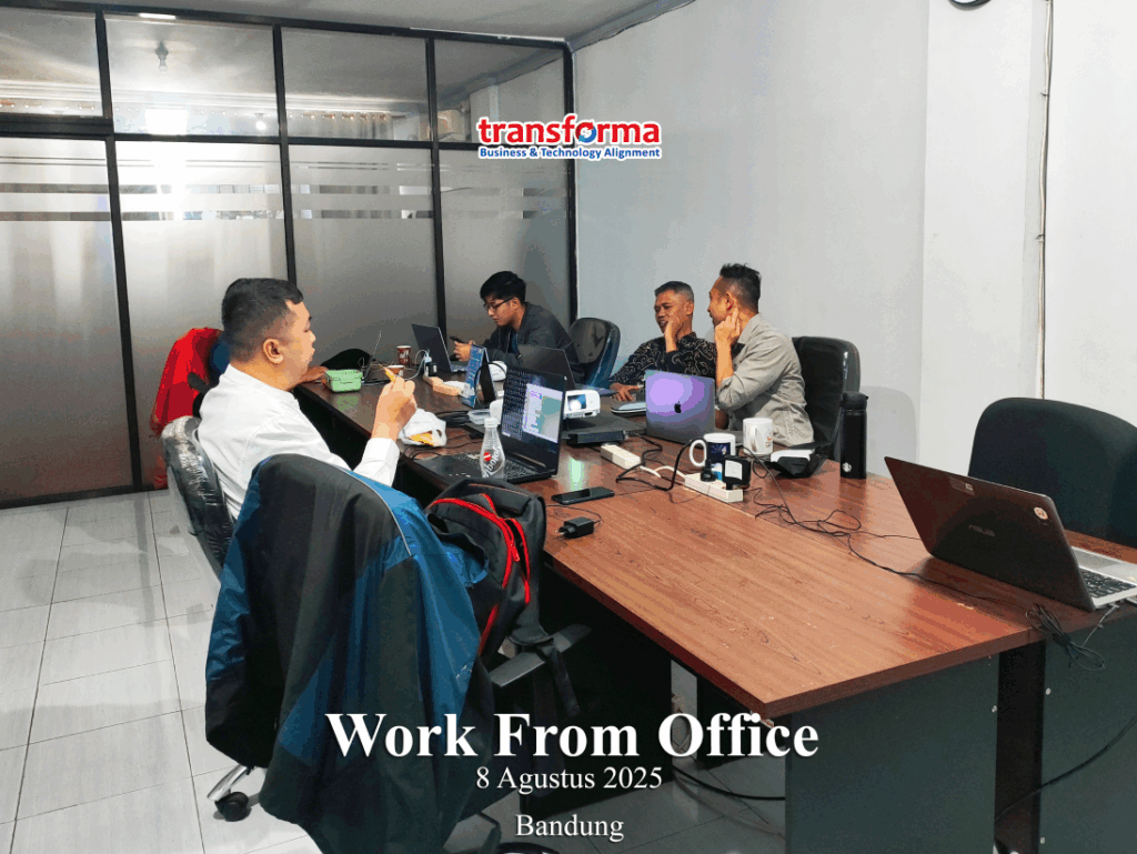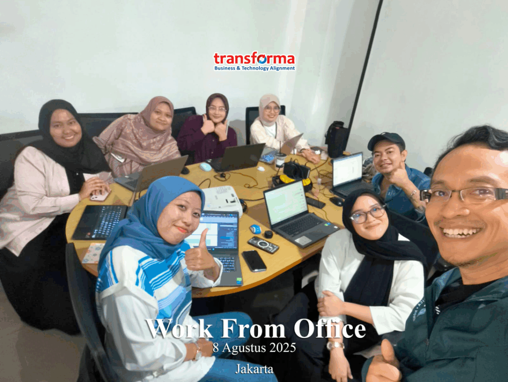 Sebagai bagian dari komitmen dalam menjaga kualitas layanan dan memperkuat kolaborasi internal, PT Transforma Rekayasa dan Solusi secara rutin melaksanakan kegiatan Work From Office (WFO). Melalui kegiatan ini, seluruh tim berkesempatan untuk berinteraksi langsung, berdiskusi secara intensif, serta berkolaborasi dalam mengembangkan berbagai solusi strategis yang mendukung kebutuhan klien.