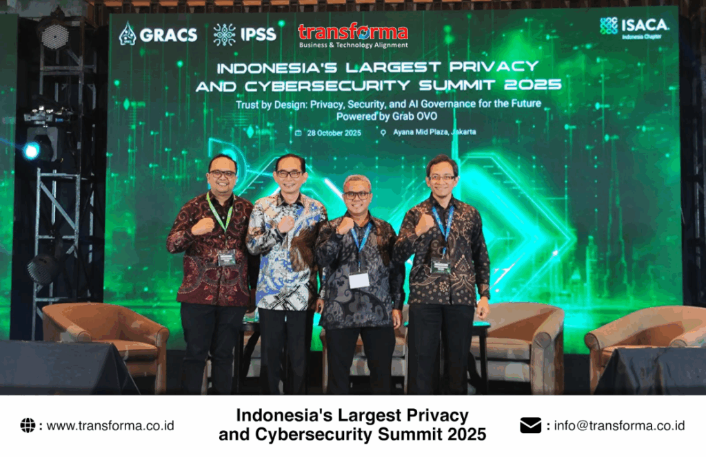PT. Transforma Rekayasa dan Solusi, melalui divisi GRACS (Governance, Risk, Audit, and Compliance Services), turut berpartisipasi dalam Indonesia’s Largest Privacy and Cybersecurity Summit 2025, sebuah ajang nasional yang mempertemukan para pemimpin, praktisi, regulator, dan profesional di bidang keamanan siber dan privasi data.