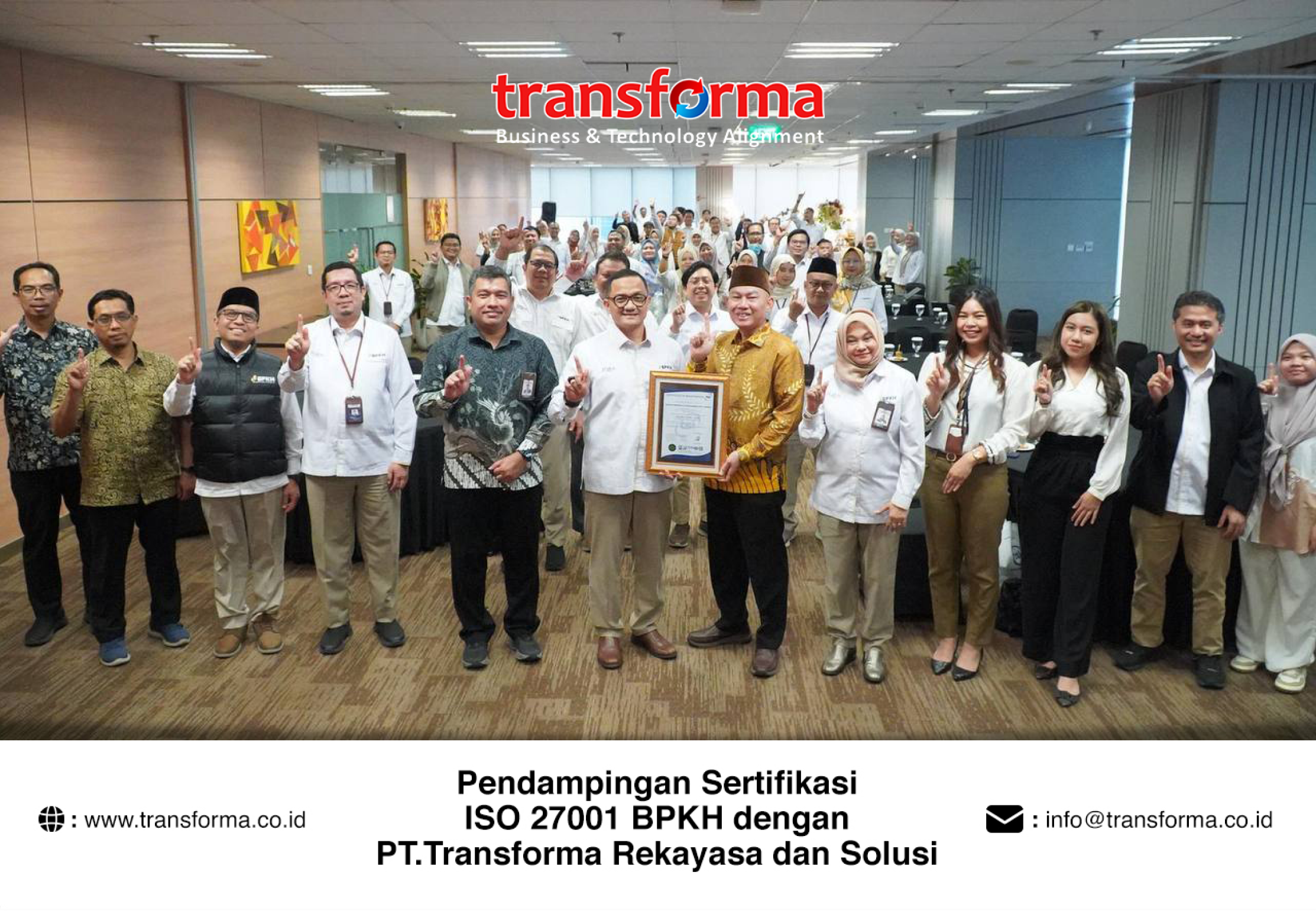 Sebagai bentuk komitmen dalam mendukung penerapan tata kelola keamanan informasi yang andal dan berstandar internasional, PT. Transforma Rekayasa dan Solusi dipercaya sebagai mitra pendamping Badan Pengelola Keuangan Haji (BPKH) dalam kegiatan Pendampingan Sertifikasi ISO 27001:2022.